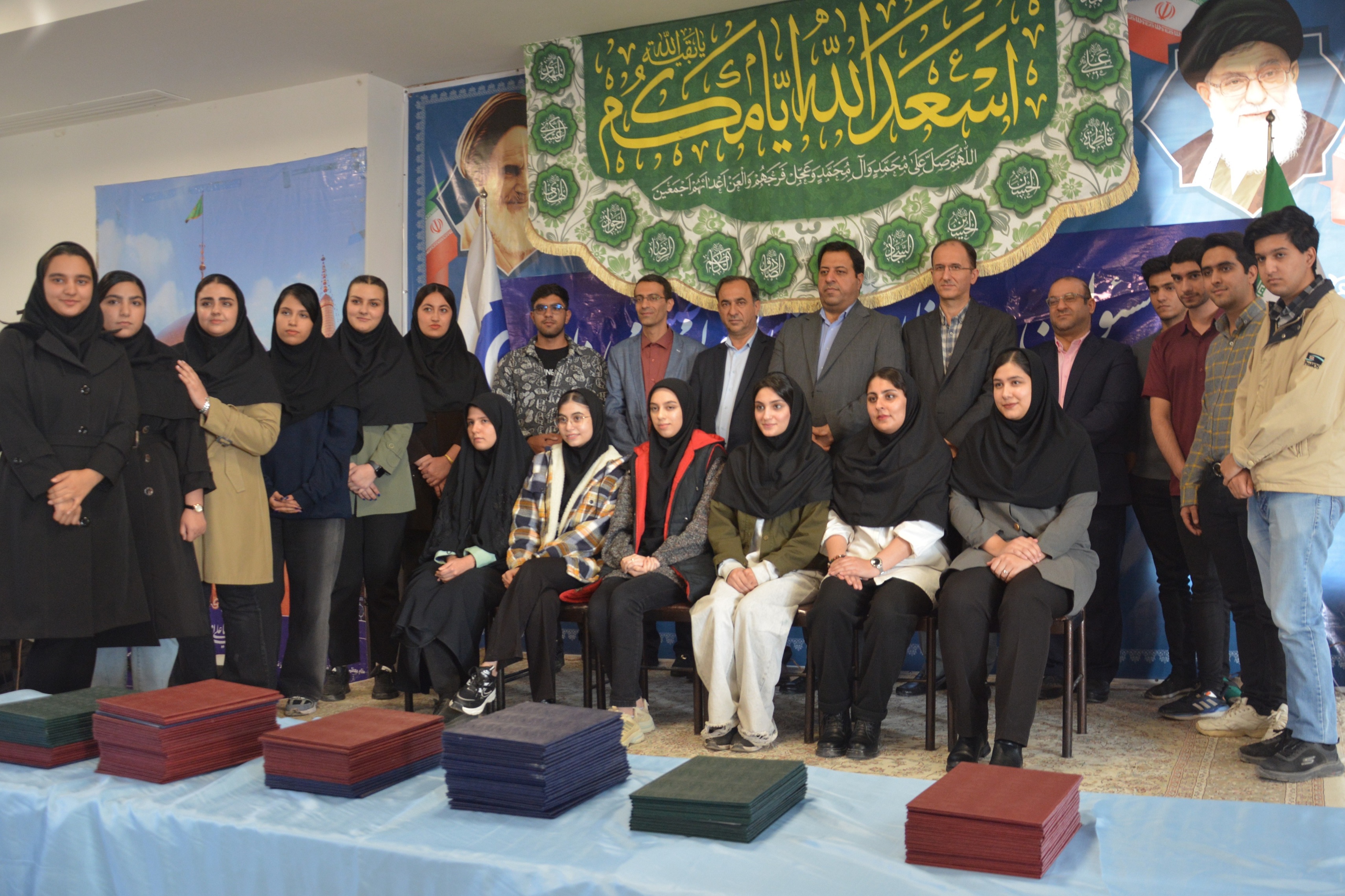 یکی از بخشهای جذاب این مراسم، اجرای زنده موسیقی توسط گروه دانشجویی دانشگاه بود که با استقبال گرم حضار همراه شد. همچنین یکی از گروههای هنری شهرستان نیز با اجرای موسیقی، بر غنای هنری برنامه افزود. در بخش پایانی مراسم، از دانشجویان برتر دانشگاه در حوزههای آموزشی، پژوهشی، فرهنگی و ورزشی با اهدای لوح تقدیر تجلیل بهعمل آمد. این بخش با تشویقهای ممتد حضار و فضای پرشور سالن همراه بود و نشان از قدردانی جامعه دانشگاهی از تلاشهای دانشجویان داشت.