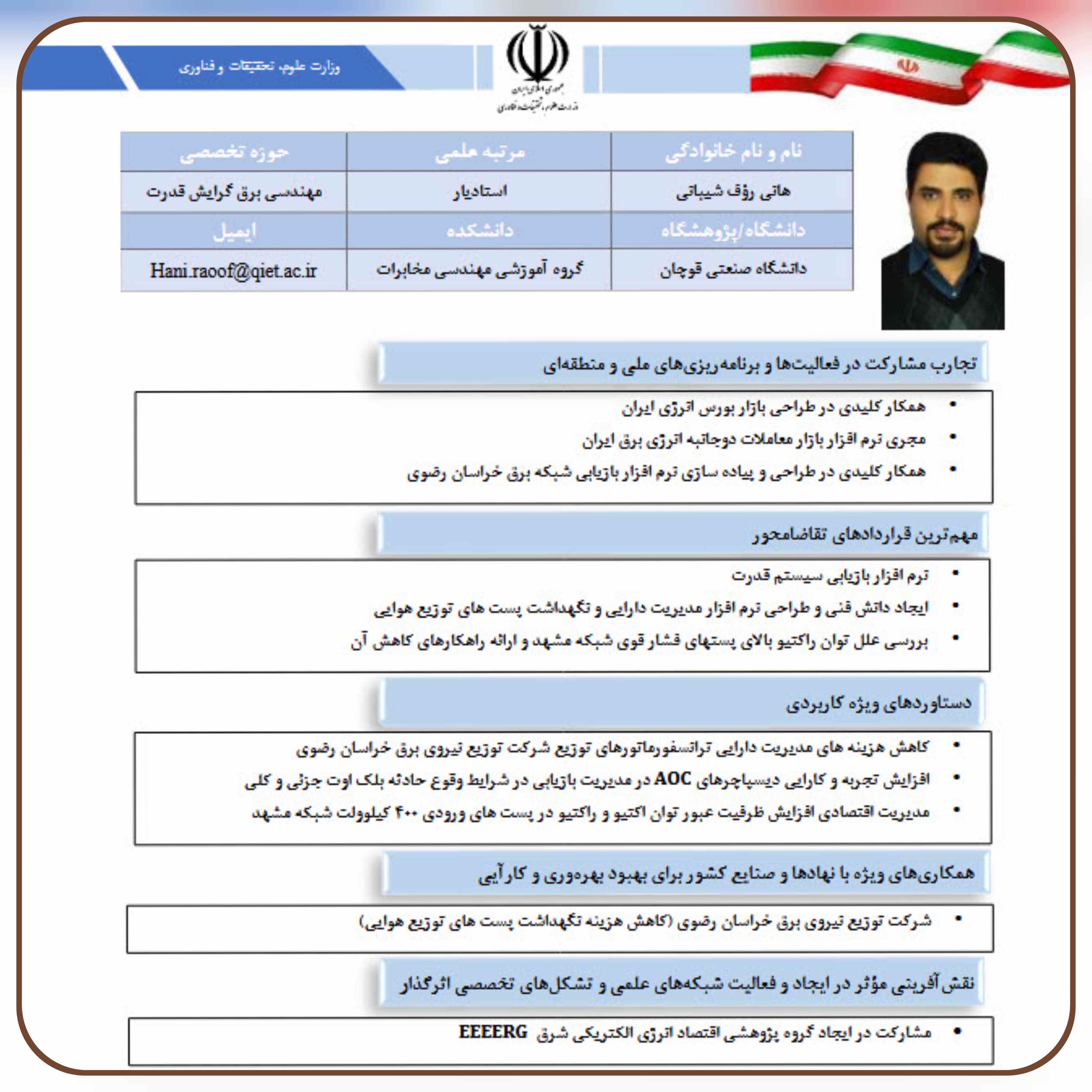خوشبختانه در این دوره، جناب آقای دکتر هانی رئوف شیبانی، عضو هیئت علمی گروه مهندسی برق و معاون آموزشی و پژوهشی دانشگاه صنعتی قوچان، به‌عنوان یکی از اعضای هیئت علمی برگزیده کشور در حوزه همکاری با جامعه و صنعت انتخاب شدند. این موفقیت ارزشمند، حاصل تلاش‌های مؤثر ایشان در توسعه ارتباط دانشگاه با صنعت، اجرای پروژه‌های کاربردی، پاسخ‌گویی به نیازهای فناورانه جامعه و بهره‌گیری از ظرفیت‌های علمی دانشگاه در حل مسائل واقعی کشور است و نشان‌دهنده نقش فعال دانشگاه صنعتی قوچان در مسیر دانشگاه نسل سوم و مأموریت‌گرا می‌باشد.